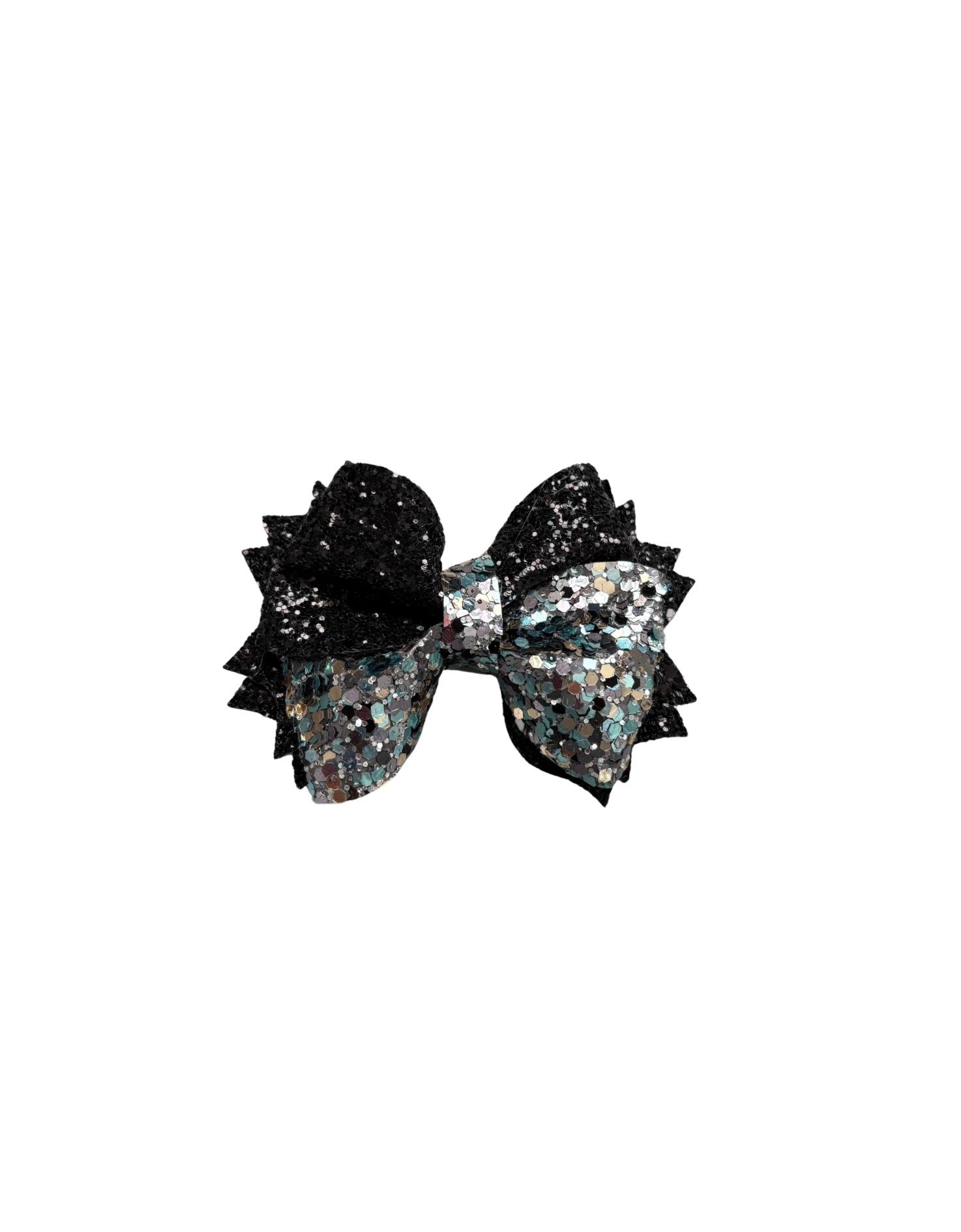 Blue, Silver & Black Chunky Glitter Faux Leather Twist Pinch Bow