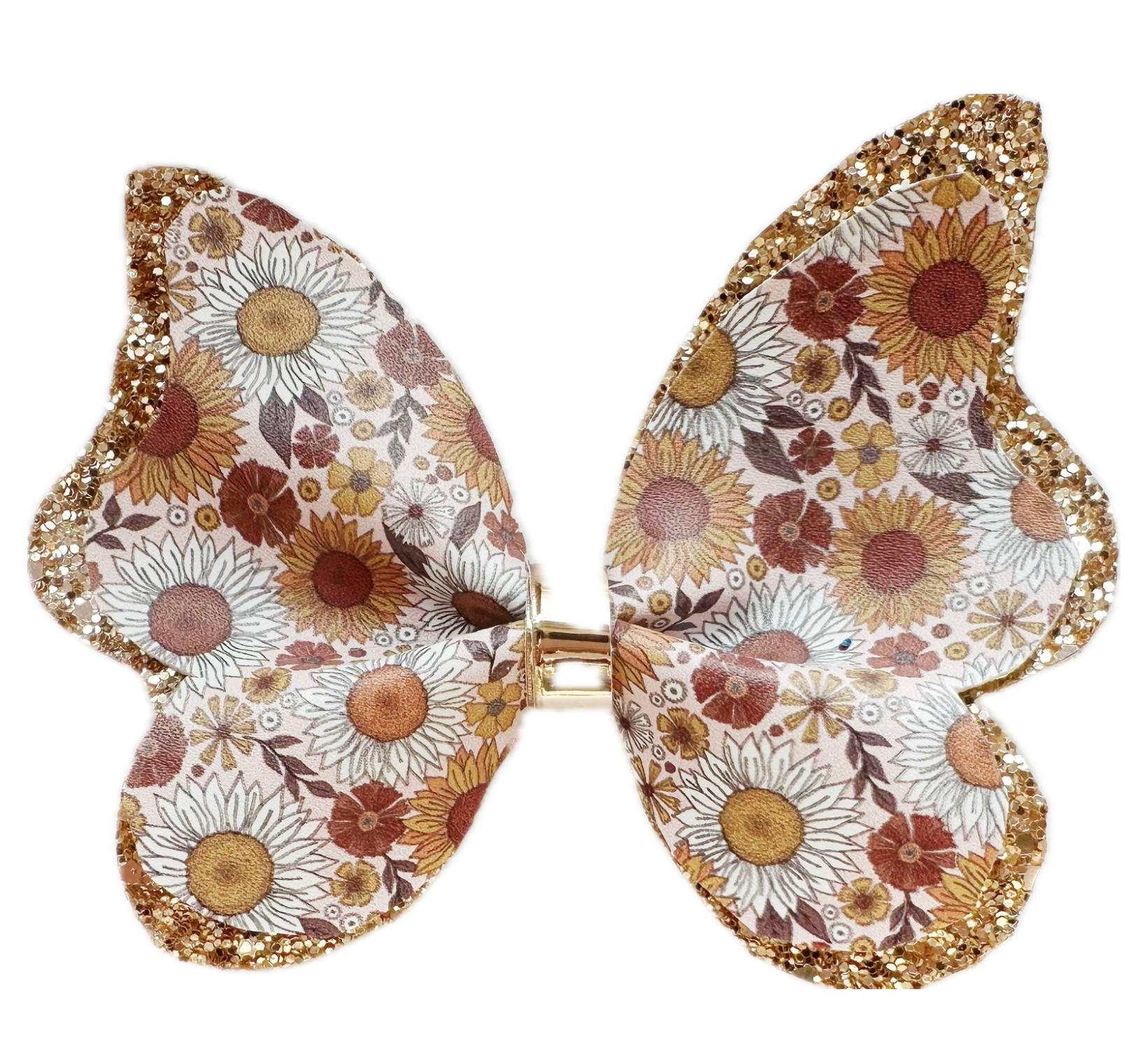 Boho Floral Butterfly Faux Leather Chunky Glitter Pinch Bow|Headband