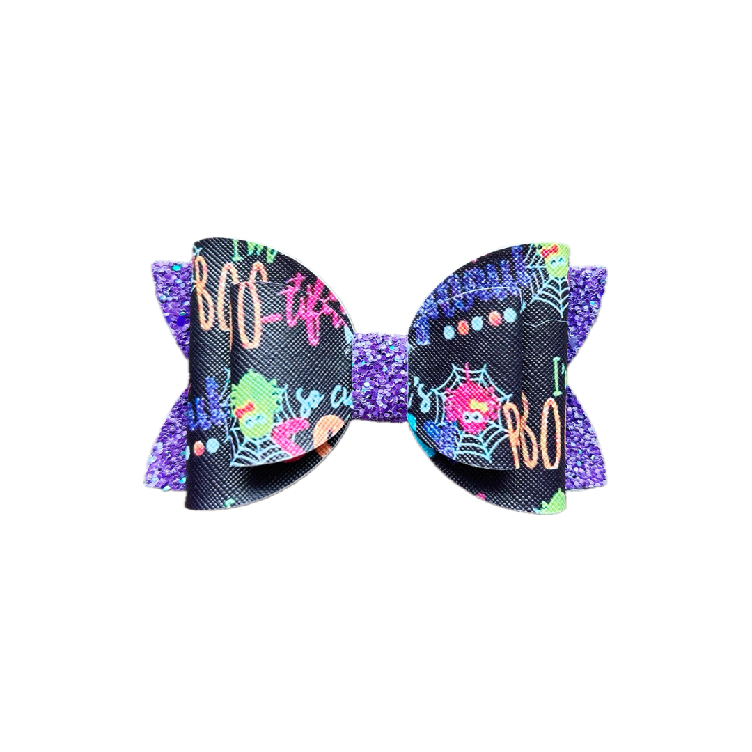 Boo Halloween Faux Leather Chunky Glitter Double Stack Bow|Headband