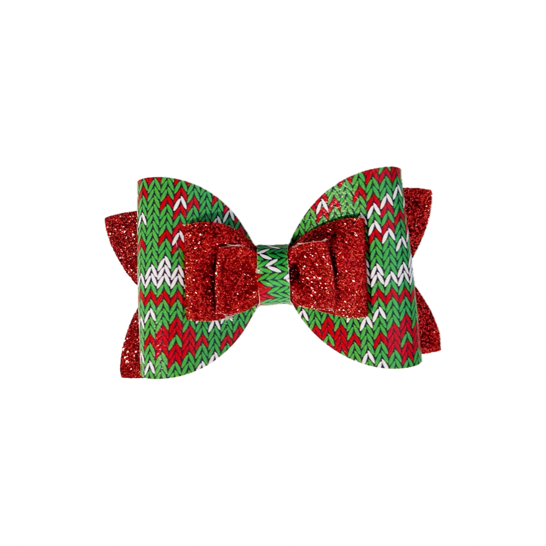 Christmas Sweather Faux Leather Fine Glitter Bow|Headband