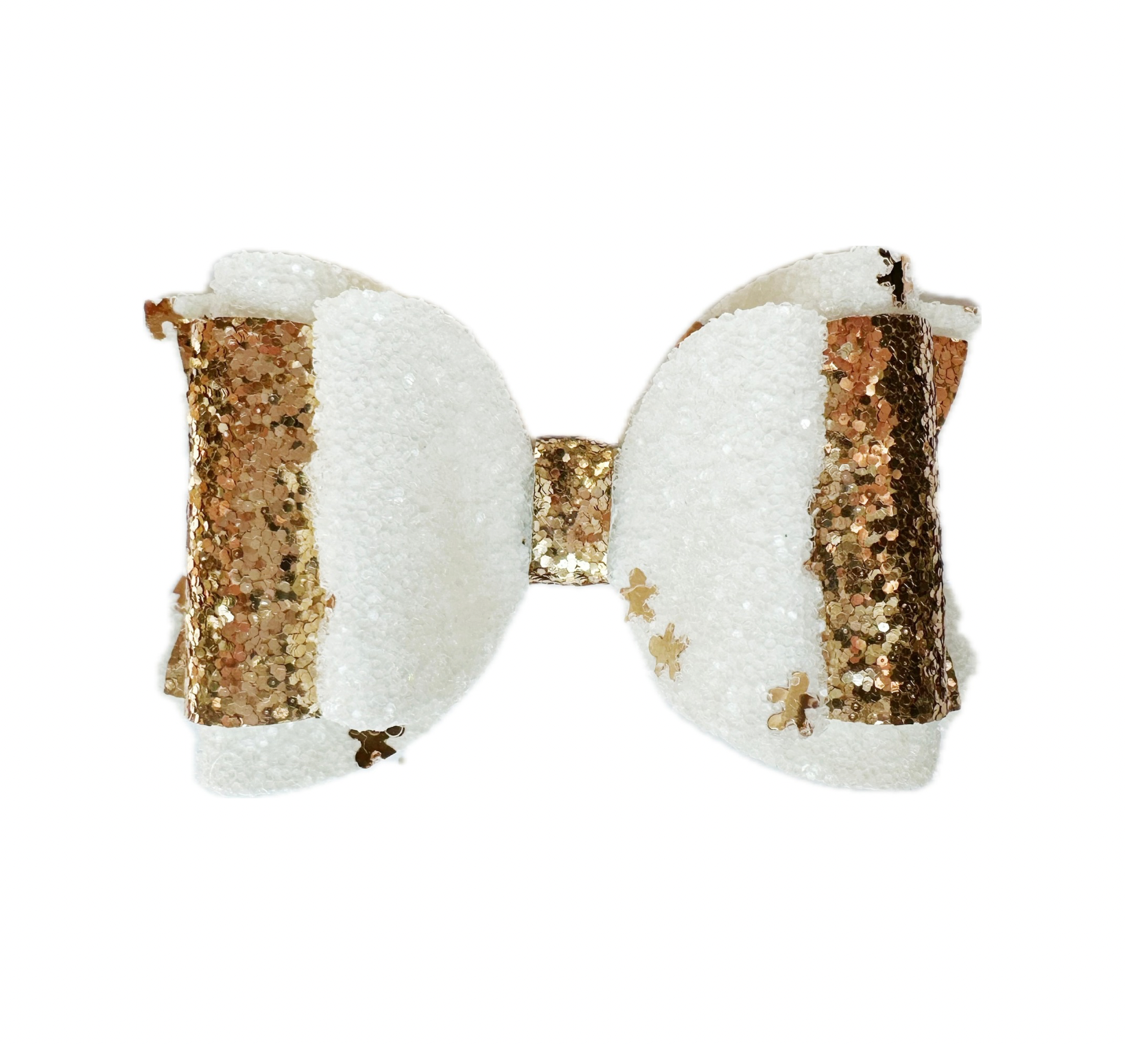 Gingerbread Man Faux Leather Chunky Glitter Double Stack Bow|Headband