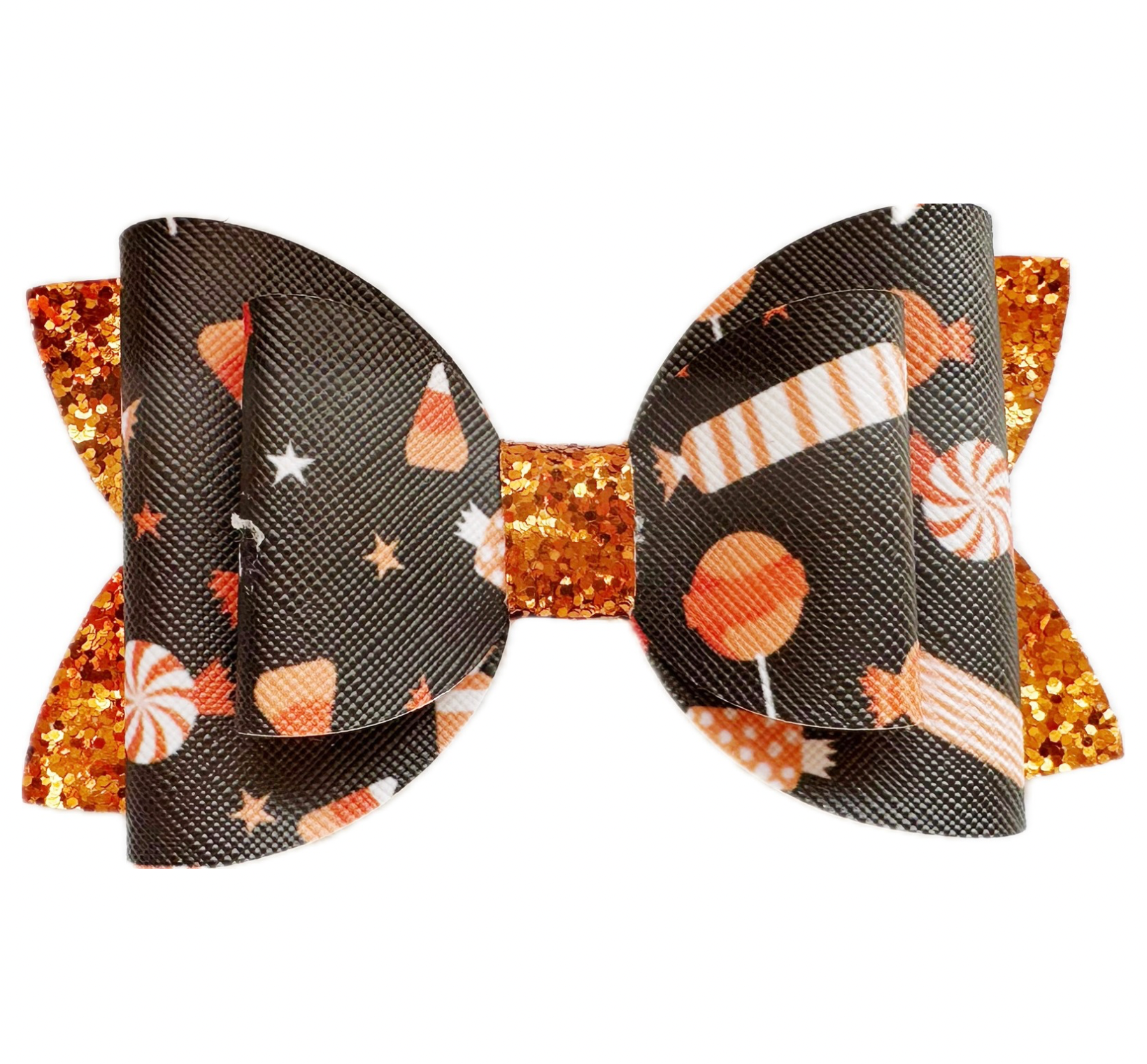 Halloween Candy Faux Leather Chunky Glitter Double Stack Bow|Headband