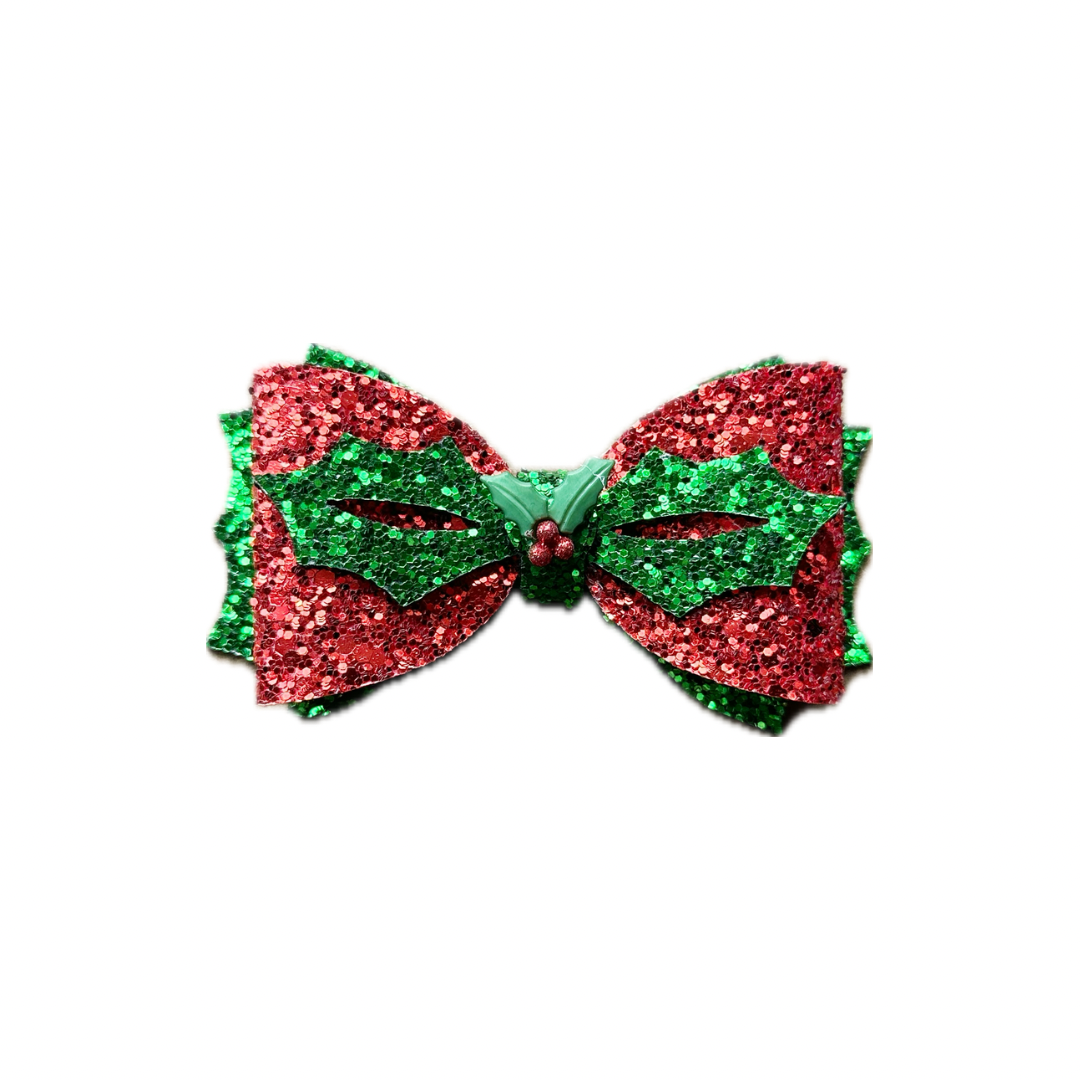 Holiday Holly Faux Leather Chunky Glitter Bow|Headband
