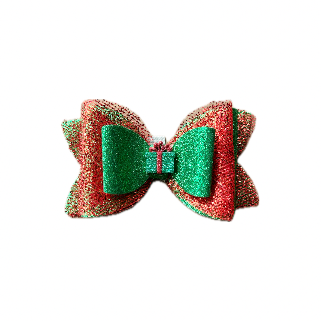 Holiday Present Faux Leather Tulle Fine Glitter Double Stack Bow|Headband