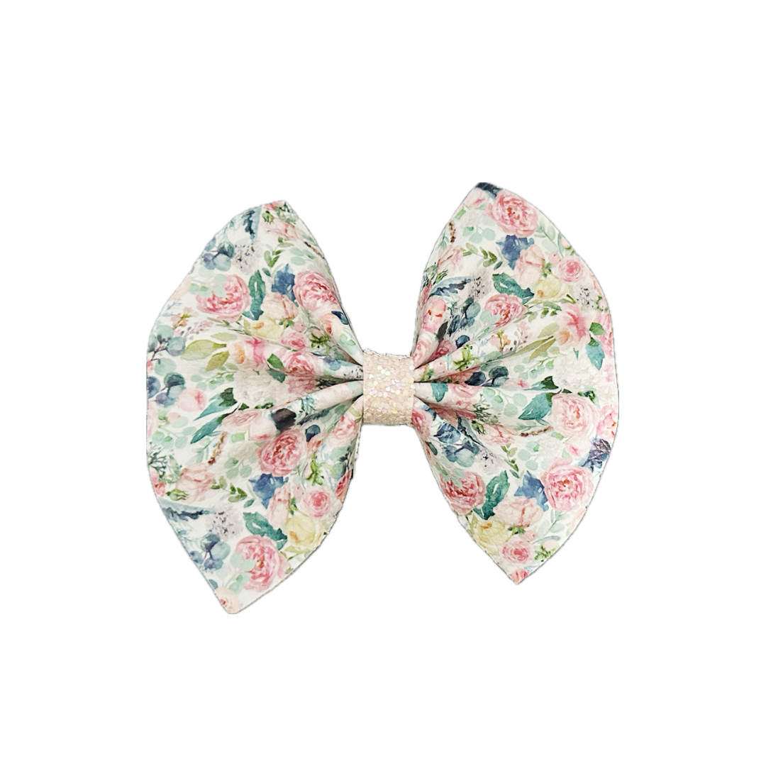 Light Floral Faux Leather Chunky Glitter Pinch Bow|Headband