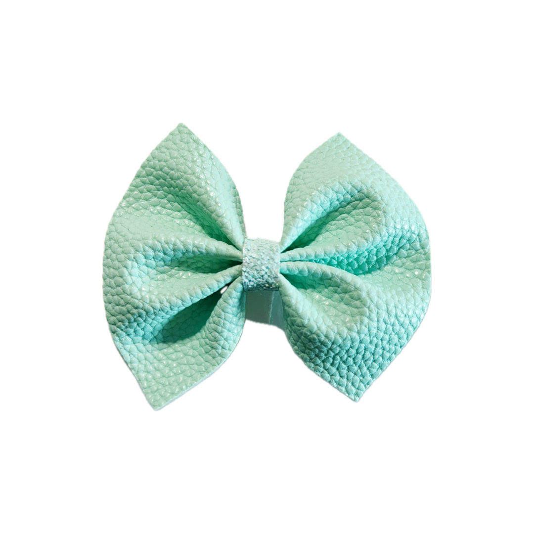 Mint Faux Leather Pinch Bow|Headband