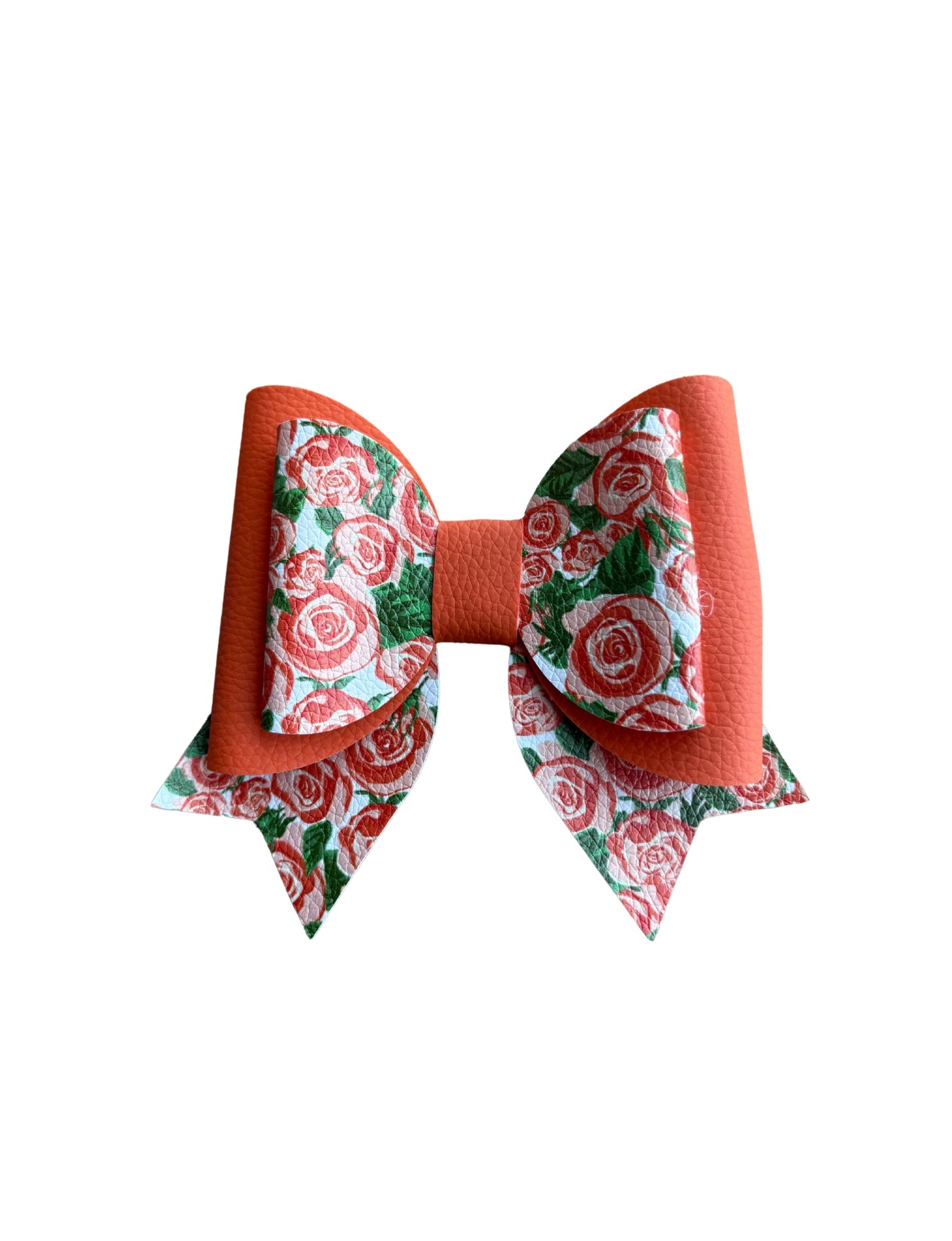 Orange Floral Double Stack Faux Leather Bow