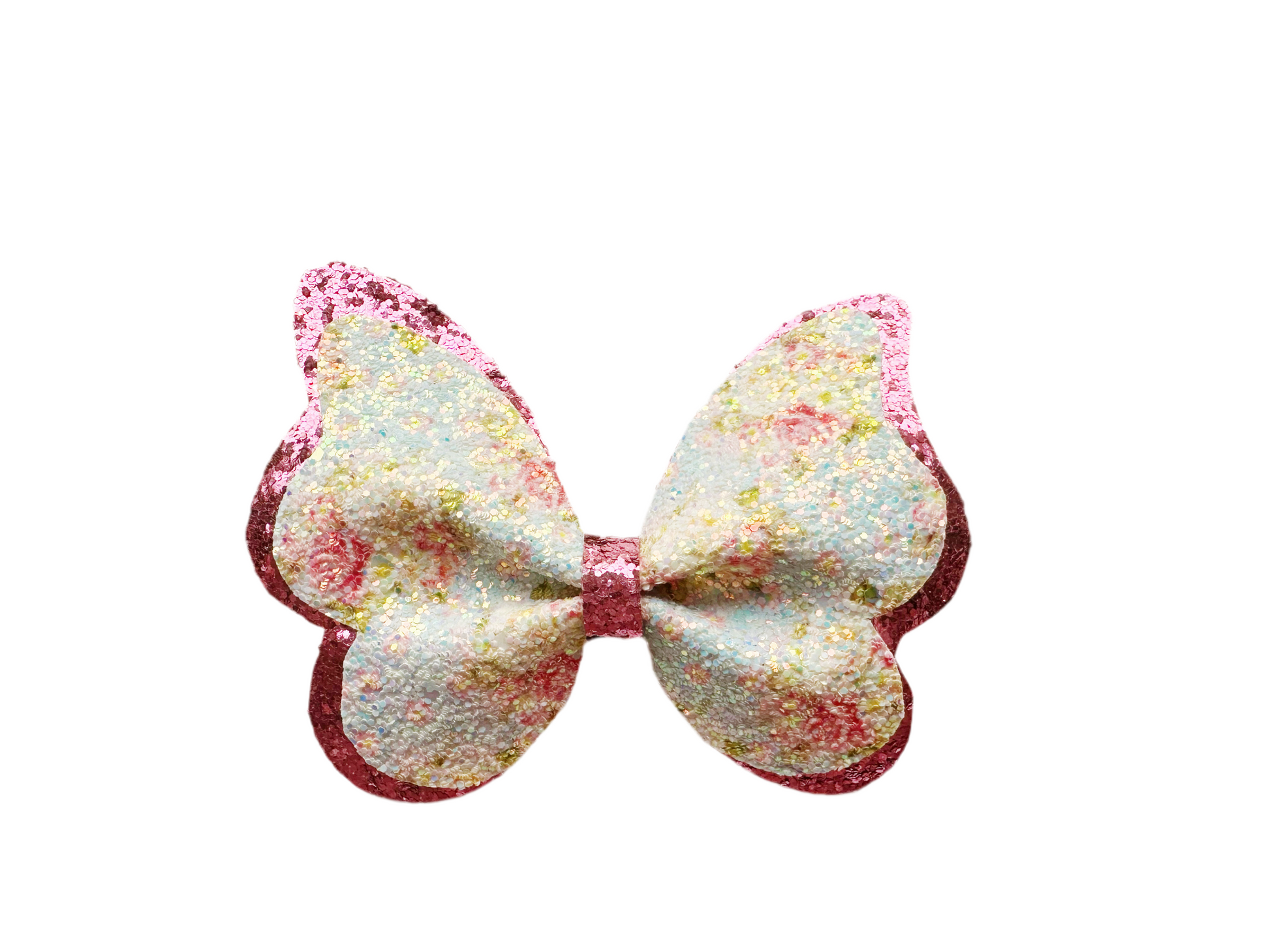 Pink Butterfly Chunky Glitter Faux Leather Pinch Bow|Headband