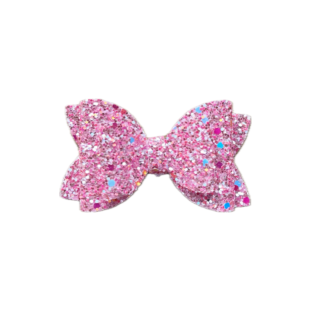 Pink Confetti Faux Leather Chunky Glitter Double Stack MINI Bow|Headband