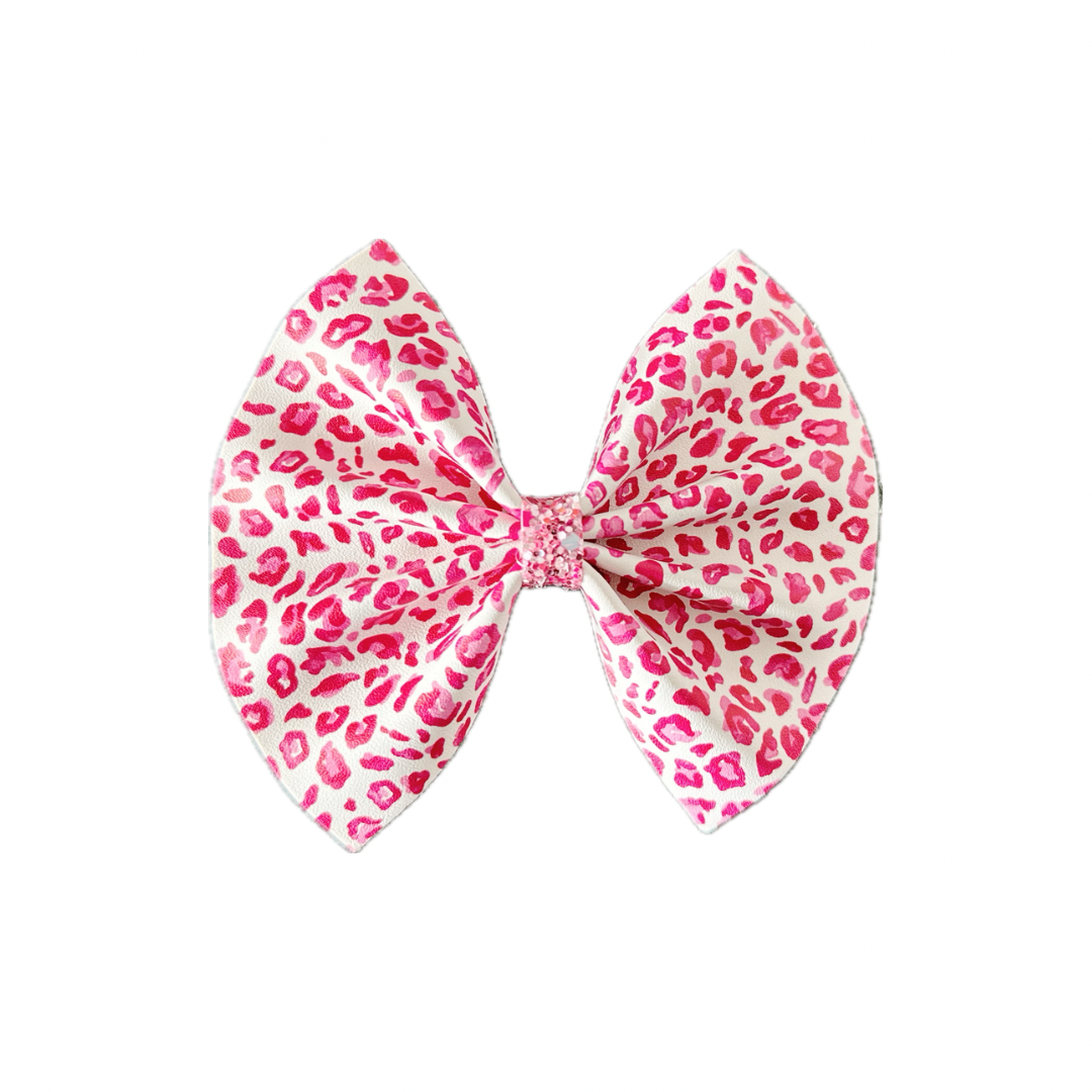 Pink Leopard Faux Leather Pinch Bow|Headband