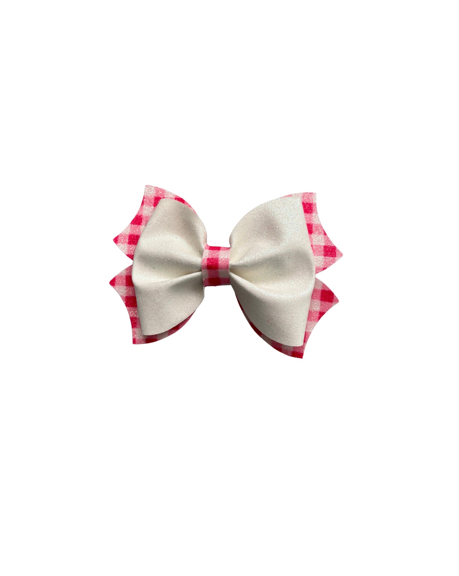 Pink Plaid Faux Leather Double Stack Pinch Bow|Headband