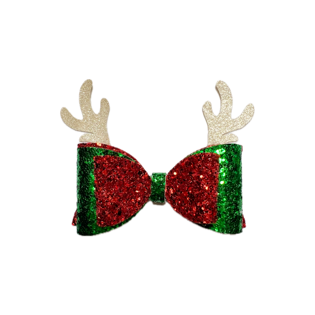 Reindeer Christmas Faux Leather Chunky Glitter Double Stack Bow|Headband